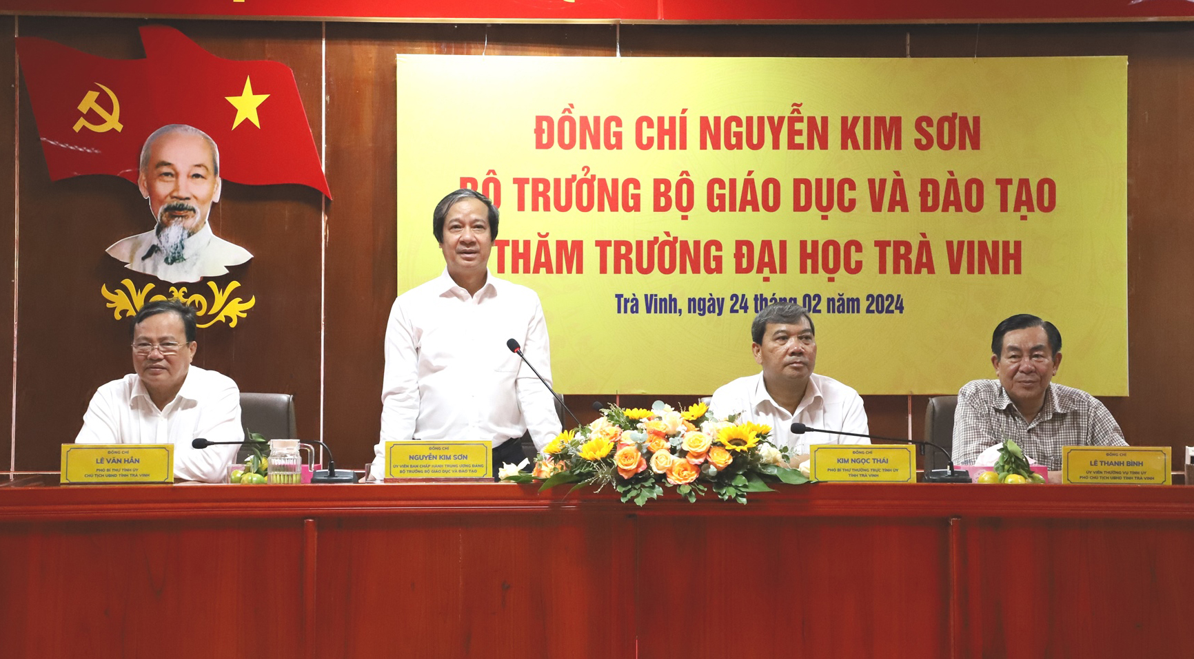 Nguồn: https://giaoducthoidai.vn/truong-dh-tra-vinh-dinh-huong-phat-trien-gan-nhu-cau-nhan-luc-dia-phuong-post672974.html GD&TĐ – Chiều 24/2, trong chuyến công tác tại tỉnh Trà Vinh, Bộ trưởng Bộ GD&ĐT Nguyễn Kim Sơn thăm và làm việc tại Trường ĐH Trà Vinh. [caption