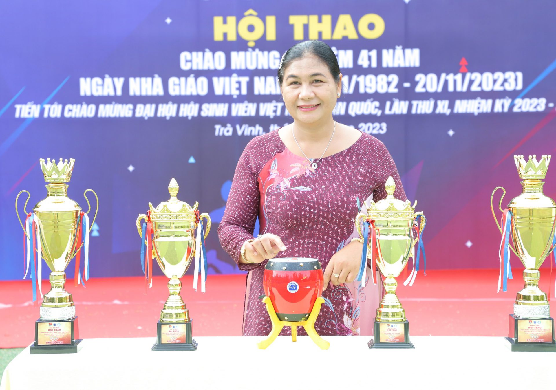 (TVU) – Sáng 28/10 tại sân bóng đá khu 1, TS. Thạch Thị Dân, Ủy viên thường vụ Đảng ủy, Phó Hiệu trưởng Trường ĐH Trà Vinh phát lệnh khai mạc