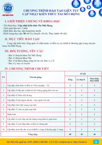 - Tên khóa học: Cập nhật kiến thức Tai Mũi Họng